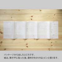 折ってパッケージされていますが、障子戸に貼った後、霧吹をかけるとピンと張ります。