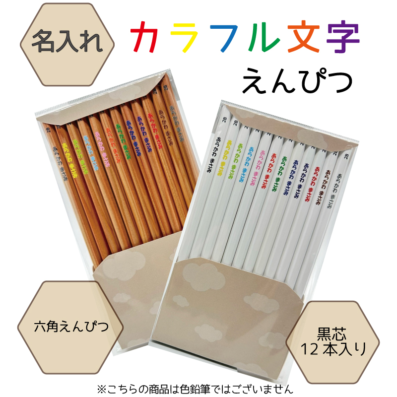 カラフル文字 名入れ鉛筆 お名前えんぴつ 木目 ホワイト地 かきかた 六角 えんぴつ 名前入り鉛筆 文房具 新幹線 キャラ 送料無料