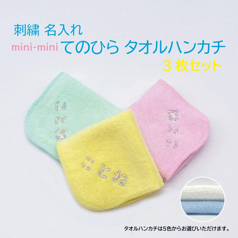刺繍名入れ mini-mini タオルハンカチ 3枚セット 入園準備に最適! プレゼント 入園祝い 保育園 幼稚園 新学期 名前 ギフト 誕生日 記念 名前入り