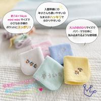 タオルハンカチの大きさは約14cm×14cmの小さめサイズなので、小さなお子様のポケットにもすっぽりと収まります。