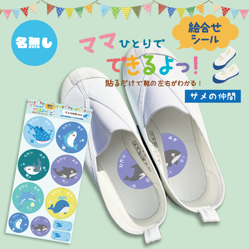 名入れ無し 貼るだけで靴の左右がわかる!絵合わせシール 耐水 防水 お名前シール