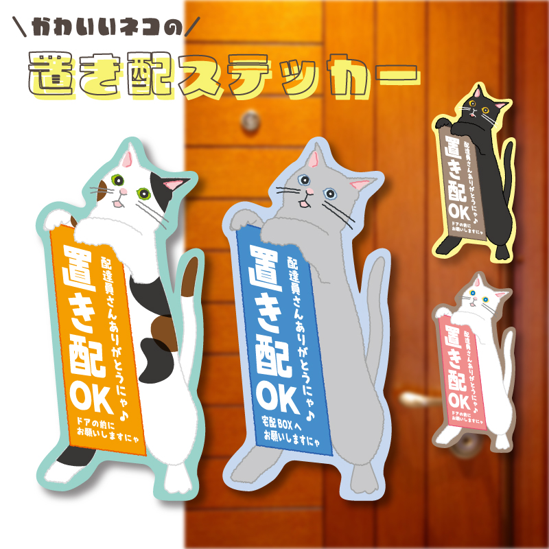 置き配ステッカー 猫 縦長タイプ かわいい猫のステッカー 防水 ・ 耐熱 ステッカー シール 1枚
