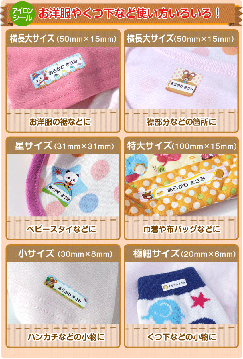 様々なアイテムに貼れるようサイズも豊富に取り揃えております。