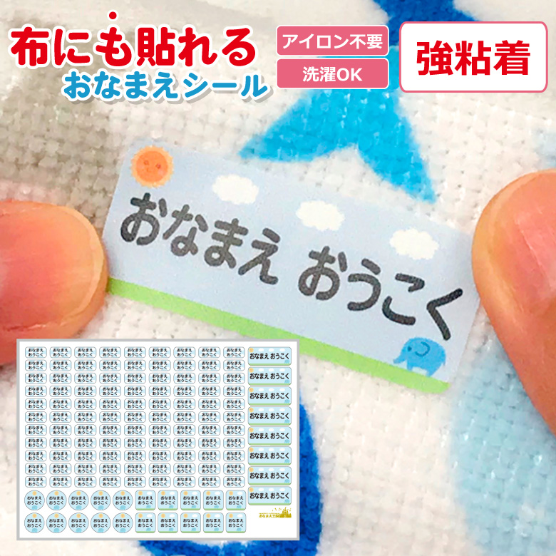 布にも貼れる お名前シール 強粘着 名前シール おなまえシール アイロン不要 ノンアイロン 布 服 衣類 ハンカチ 綿 タグ 防水 耐水 小学校 保育園 幼稚園 新学期 入園 入学 入園準備 入学準備 卒園 爆買