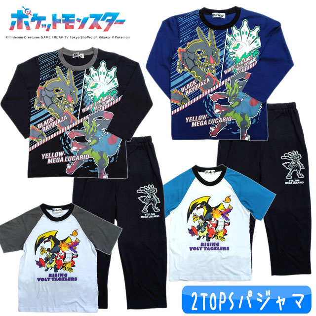 ポケモン パジャマ 半袖 長袖 ブラックレックウザ イエローメガルカリオ 2TOPS ポケットモンスター パジャマ fo-2top06