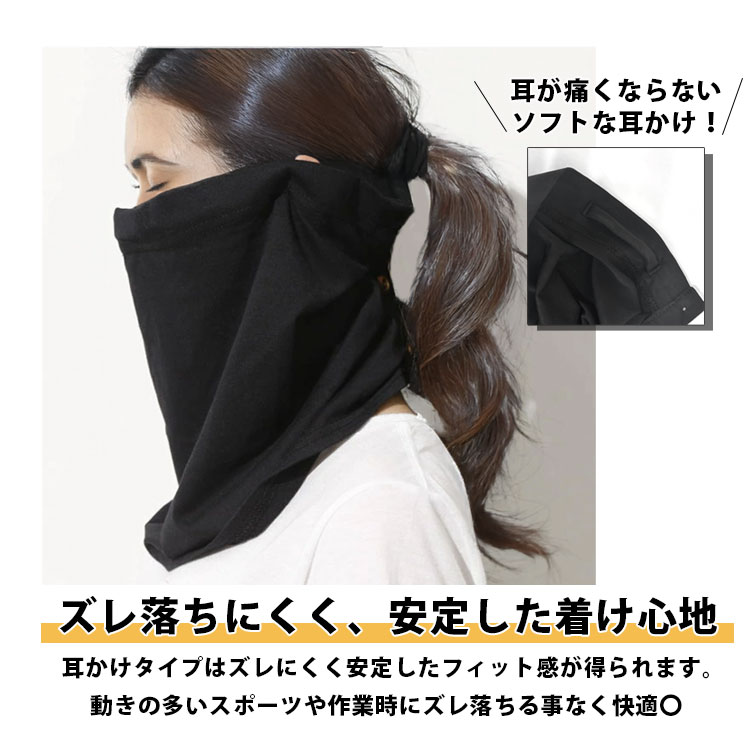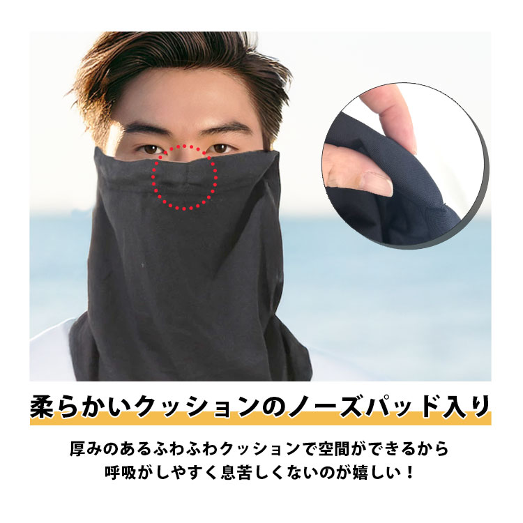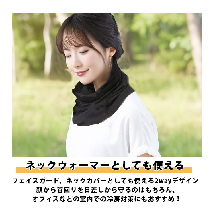| Point | ・フェイスカバーとネックカバーを使い分けできる便利な2way仕様 ・背面にはボタン付きでフェイスカバーの野暮ったさを解消 ・脱着は簡単でボタンをつけたまますっぽり被ることも可能(フェイスカバーでの使用時) ・性別問わずユニセックスでの使用が可能。洗濯できるからシェア使いもおすすめです ・接触冷感生地を使用しているので春夏のアイテムにぴったり |