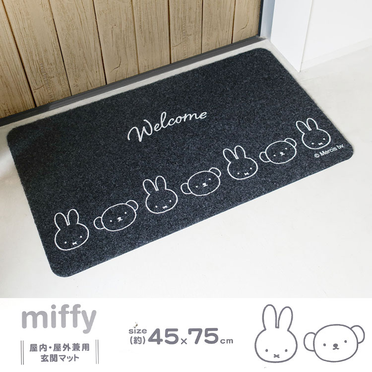 玄関マット ミッフィー miffy 屋外 屋内 室内 兼用 45×75 北欧 すべり止め インテリアマット ラグマット 洗える 厚手 かわいい 泥落とし うさぎ キャラクター