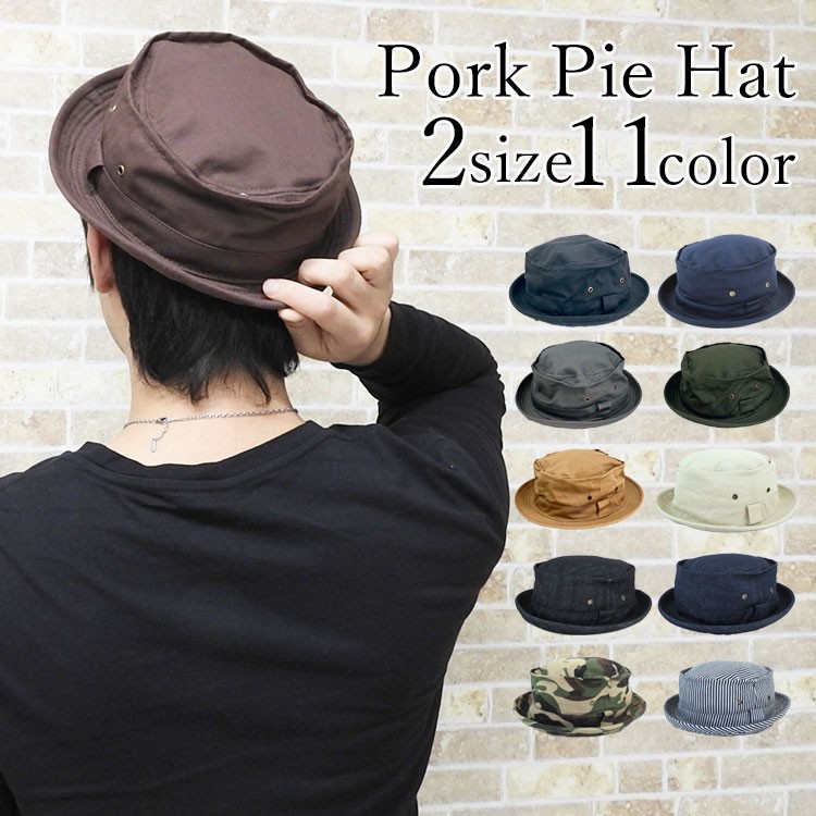 メール便送料無料 ポークパイハット メンズ 夏 コットン 帽子 ハット ベーシックポークパイハット 無地 シンプル カジュアル 綿 黒 白 デニム ベージュ ネイビー