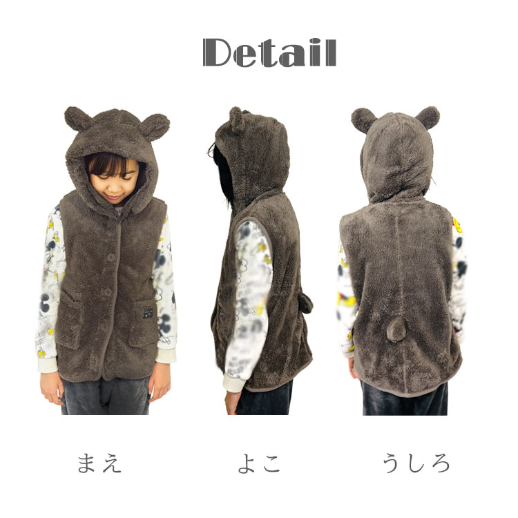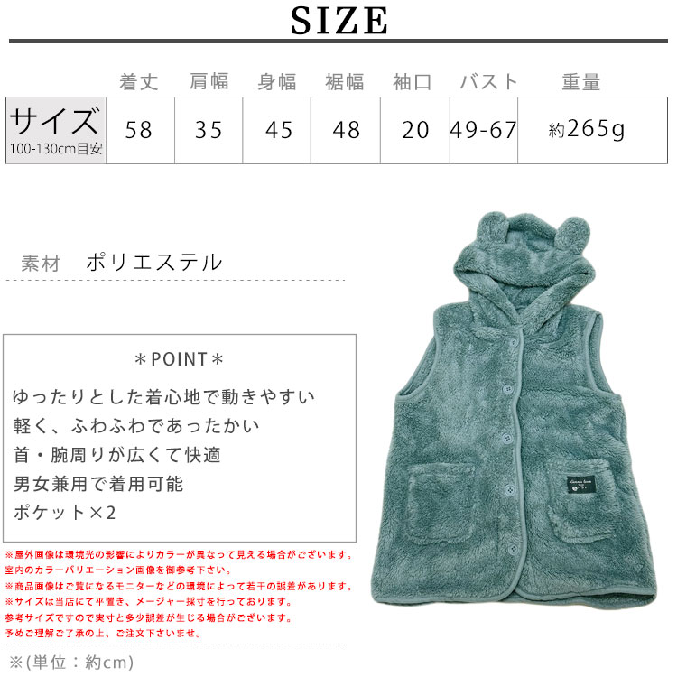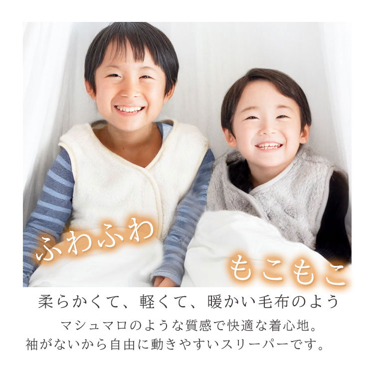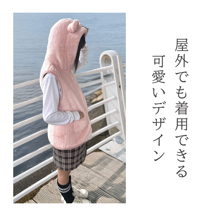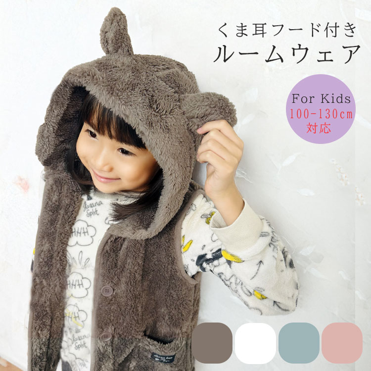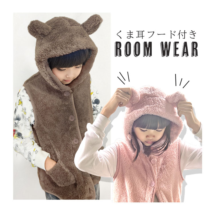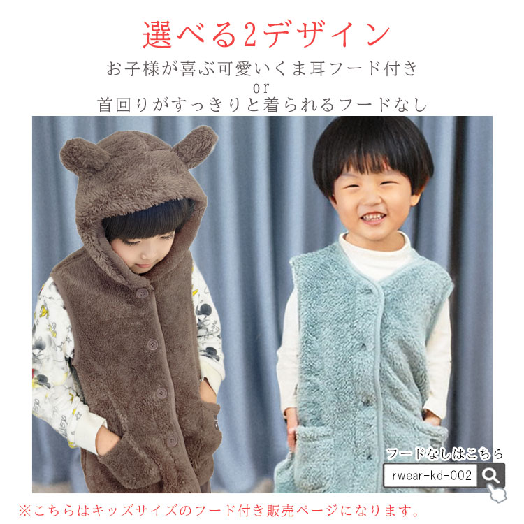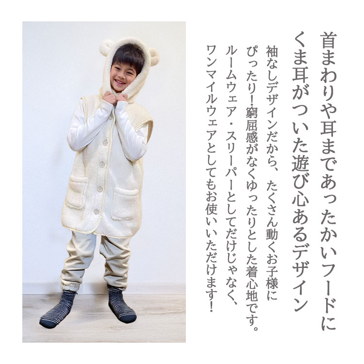 スリーパー キッズ 冬 ルームウェア ベスト もこもこ シープタッチ ボア ボアベスト フリース シンプル フード付 袖なし くま耳 着る毛布 防寒 100 110 120 130