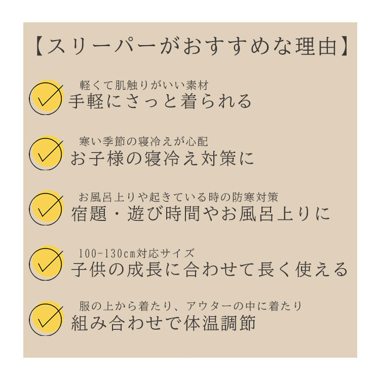 サイズ100-130cm目安(約)着丈58cm×肩幅35cm×身幅45cm×裾幅48cm×袖口20cm×バスト49-67cm