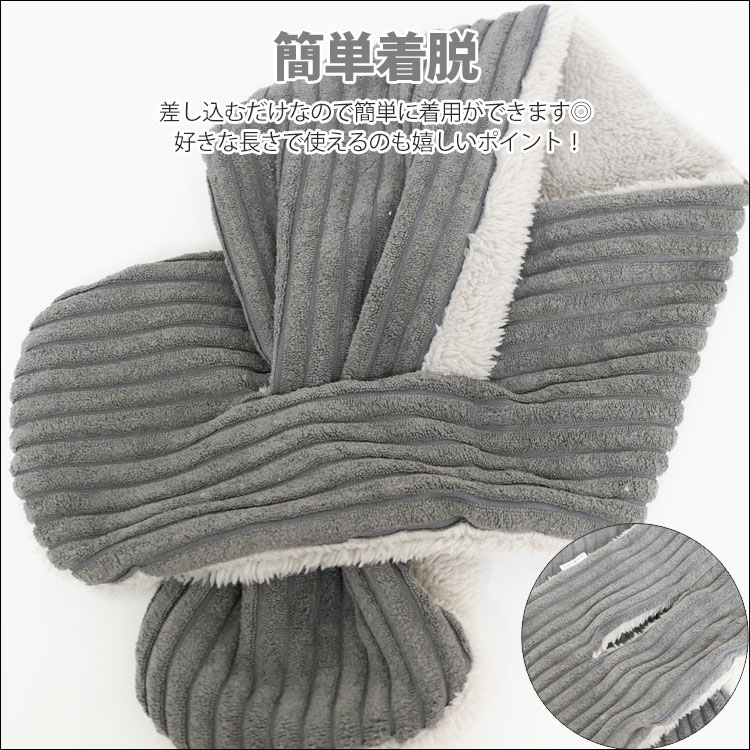 | Point | ・冷える夜もこれで解決!あったかおやすみマフラー。 ・裏表どちらも使える2wayリバーシブルで差し込むだけの簡単着脱◎ ・もこもこボアで豊富な可愛いデザイン。洗濯OKで清潔♪ ・首や肩を温め、寝る時や通勤通学時でも使える!密なボアがしっかり防風。 ・子供も大人も、男子も女子も使える!クリスマスギフトやプレゼントに★ |