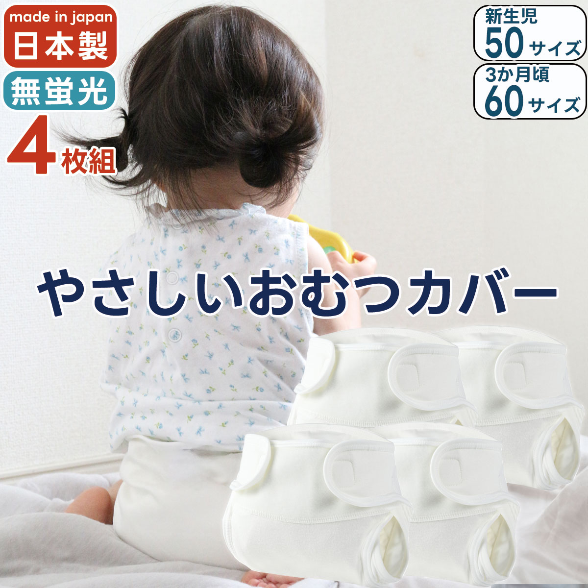 | 商品名 | パパコソ やさしいおむつカバー 綿100% 白 無蛍光 4枚組 |