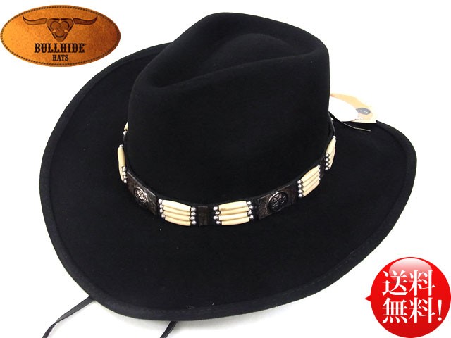BULLHAIDE ボーンビーズ コンチョ 紐付 フェルトウエスタンハット 『LAKOTA』 【ブラック】 黒 テンガロン アメリカ 秋 冬 カントリー カウボーイ 衣装