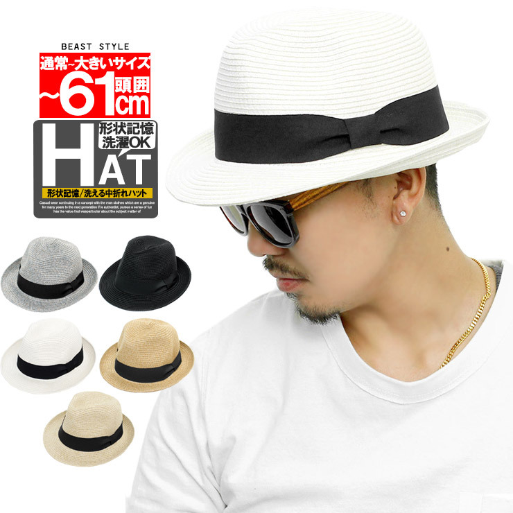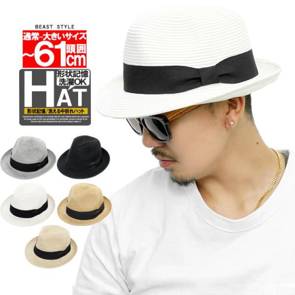【送料無料】 中折れハット メンズ 大きいサイズ 選べるサイズ 形状記憶 洗える 男女兼用 レディース ストローハット XL ハット 帽子