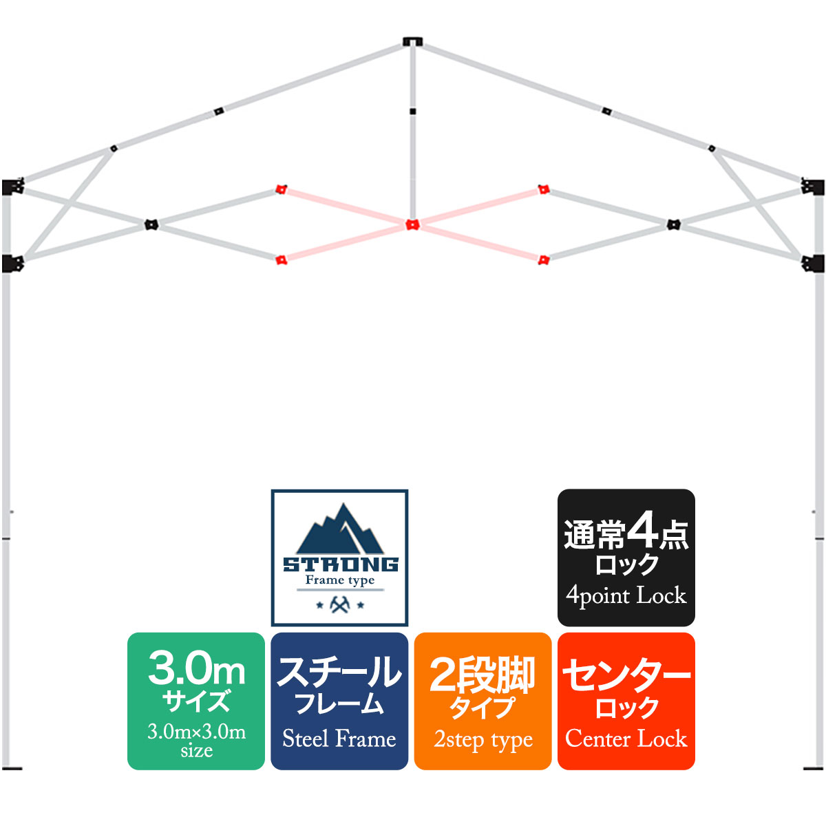 3.0mサイズ スチールフレーム(強化版) 2段脚 4点ロック/センターロック