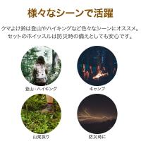 クマよけ鈴は登山やハイキング以外にも キャンプや山菜採りなど、山の中での活動にオススメ。セットのホイッスルは非常時・災害時用の備えとしても安心です。