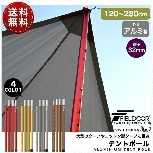 1年保証 テントポール アルミ製テントポール 直径 32mm 高さ120 - 280cm 8段階 高さ調整 アルミ サブポール タープ ポール キャノピー 用 分割式 テン 送料無料