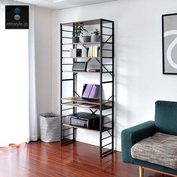 1年保証 パソコンデスク 幅75cm スリム ハイタイプ 収納ラック付き 棚付き 本棚 ハイデスク ラック一体型 PCデスク ワークデスク オフィスデスク 送料無料