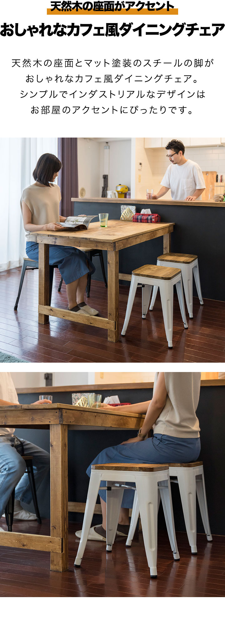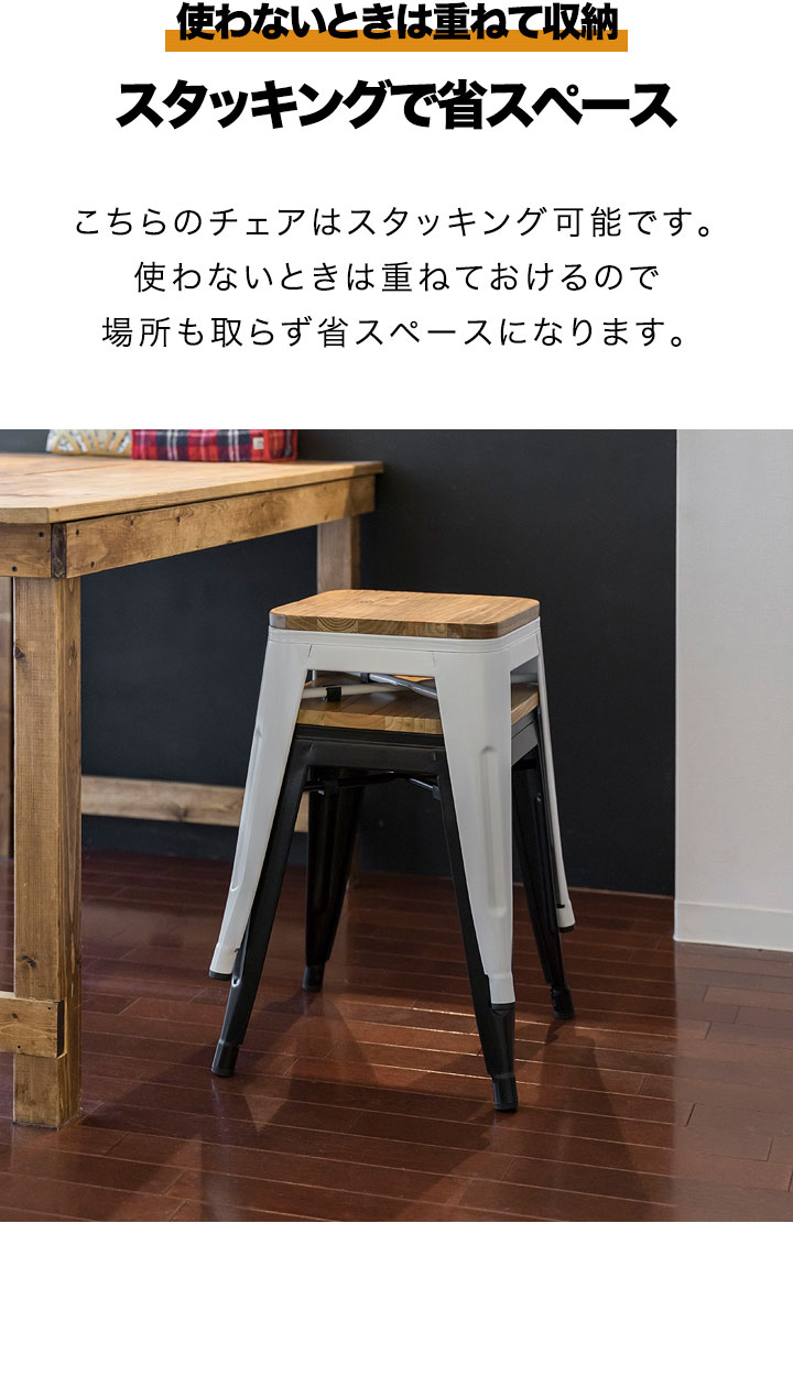 1年保証 ダイニングチェア ヴィンテージ風 おしゃれ 高さ46cm 椅子 スツール カフェ 北欧 スタッキング キッチン リビング いす 食卓 台所 木目 耐荷 送料無料