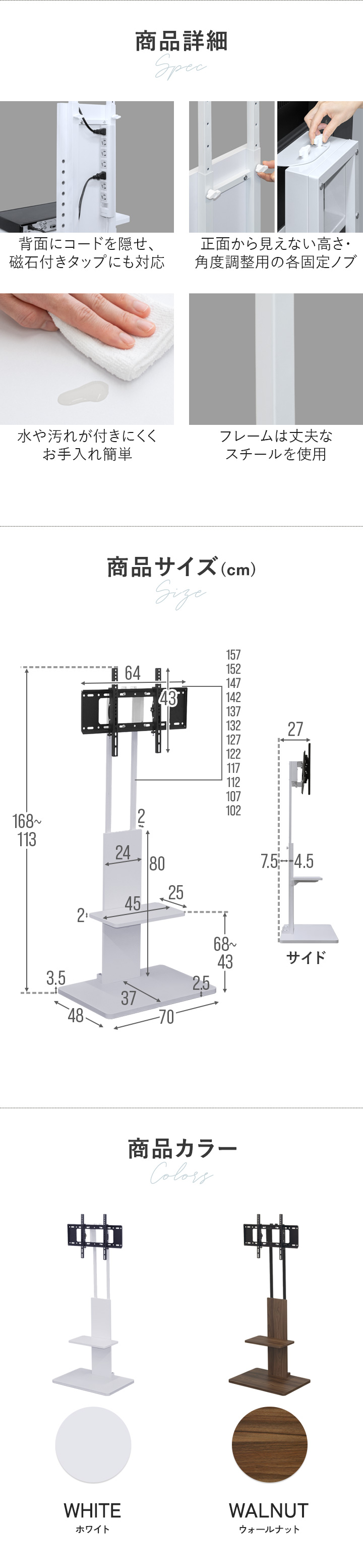 | カラー: ・ホワイト/ホワイトフレーム ・ウォールナット/ブラックフレーム |