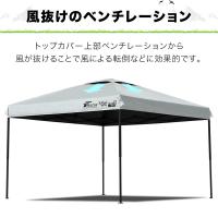 3.0×3.0mサイズのスチール製タープテントです。組み立ては広げて立ち上げるだけなので簡単。生地は遮光率100%の完全遮光・UVカット率は99.8%!遮熱効果もあるので真夏の日よけに最適です。