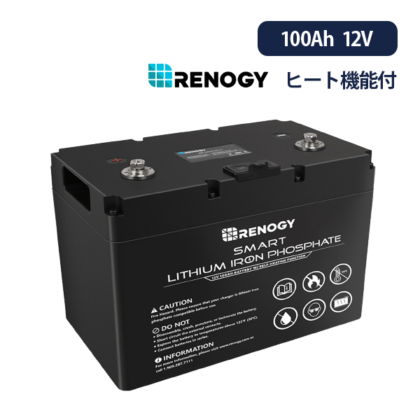 スマートリン酸鉄リチウムイオンバッテリーに、ヒート機能(自己発熱機能)付きのタイプが登場しました。これによりバッテリーの操作温度を保つことができ、寒い地域での充電が可能となります。スマートリン酸鉄リチウムイオンバッテリーは、RENOGYリン酸鉄リチウムイオンバッテリーの改良版です。重量が軽くなり、バッテリーの充放電回数を2000サイクルから4000サイクルと約2倍に延長させた、大容量のディープサイクルバッテリーです。