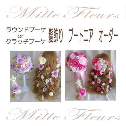 オーダー ラウンドブーケorクラッチ ラプンツェル風髪飾り ブートニア セット