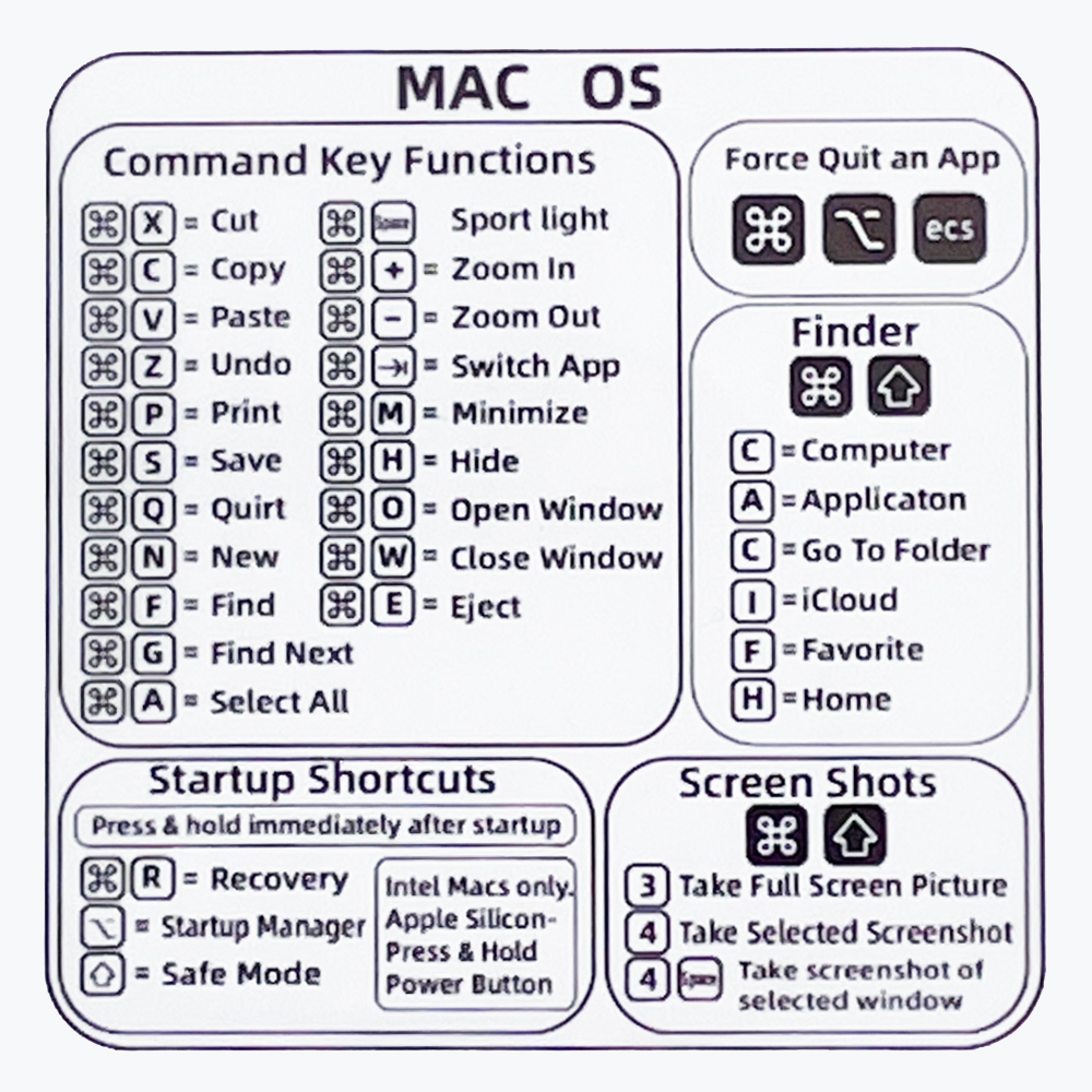 ステッカー シール デカール MacBook マックブック マックブックエアー マックブックプロ キーボード ショートカットキー 早見表 一覧 ノートパソコン パームレスト MacBook Pro MacBook Air Mac OS macos