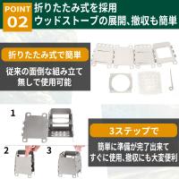 ◆【組立不要ですぐに使える】折りたたみ式を採用し、展開、撤収がとても簡単。従来のウッドストーブのような面倒な組み立てがなく、直ぐに使用することが出来ます