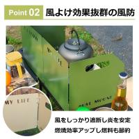 ◆【抜群の風防効果】大型のウインドスクリーンで風よけとして風をしっかり遮断し、コンロやバーナーの炎を安定させ、燃焼効率アップさせます