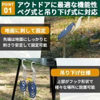◆【アウトドアに最適な機能性】ペグ型と吊り下げ式の両方に対応しており、テントや木の枝など、様々な場所に設置可能です。先端は硬い地面にもしっかりと刺さる形状で、抜群の安定性を誇ります。