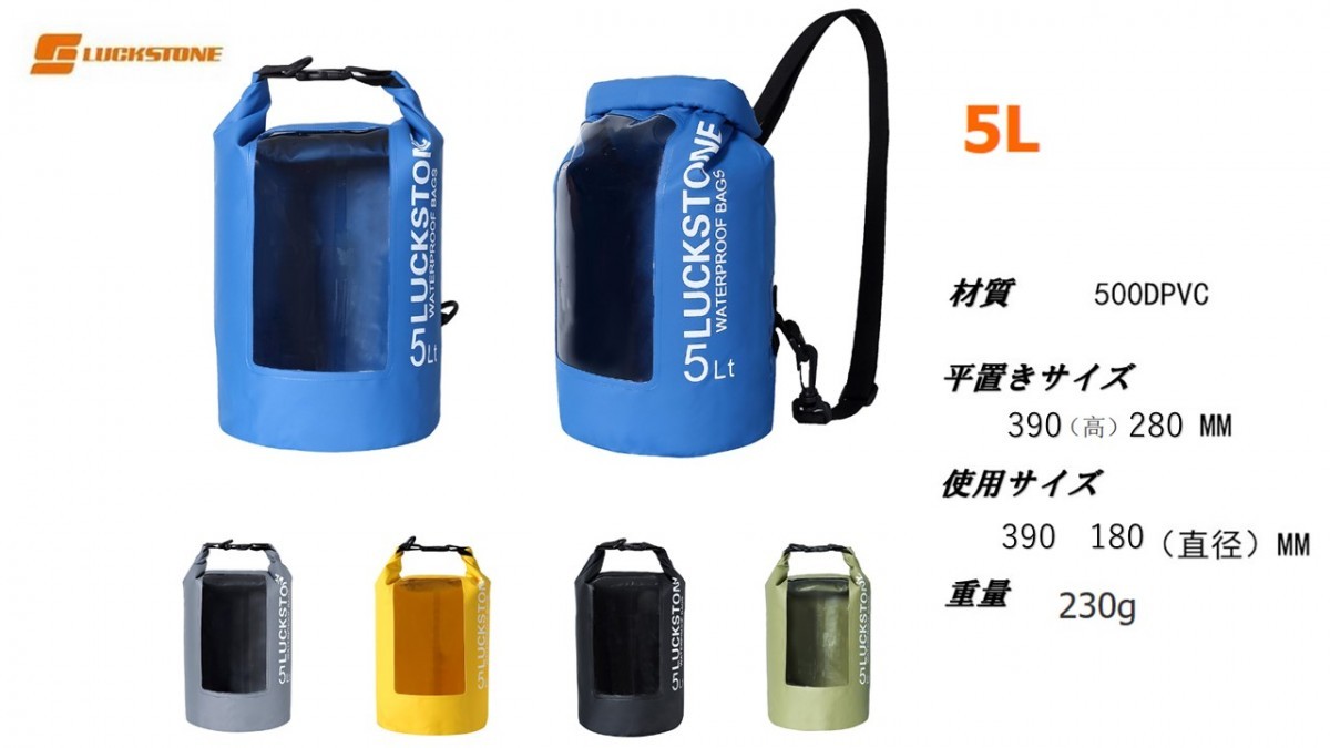 防水バッグ 5L クリア メール便送料無料 完全防水バッグ ウォータープルーフ ビーチバッグ