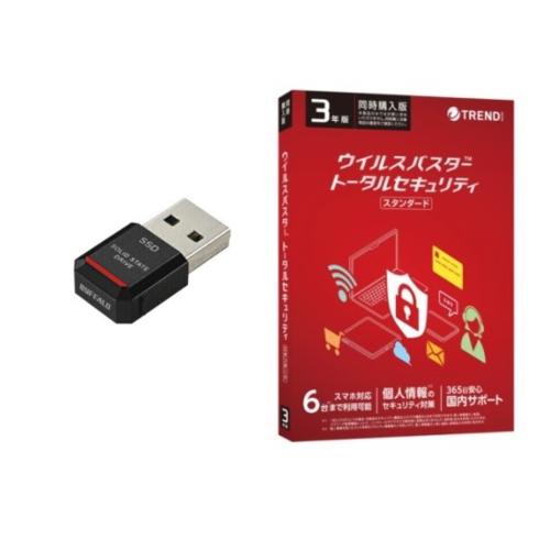 ■4981254069578 バッファロー SSD-PST250U3-BA コンパクトサイズSSD 250GB と 4988752020742 ウイルスバスター トータルセキュリティ スタンダード 3年版 同時購入用 パッケージ版 のセット