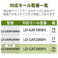 ■配線の際のケーブルを保護し、すっきりと収納できるフラットモールのジョイントパーツ(入ズミ)です。■フラットモール長さ1m幅26mm用(LD-GAF3MWH用)です。■フラットモールの蓋の上からかぶせるだけで取り付けられるので、モールの蓋と基台をズラす必要がありません。■強度の高いPVC製で、ケーブルを断線などから保護します。■メーカー環境認定基準を1つ以上満たし、『THINK ECOLOGY』マークを表示した製品です。