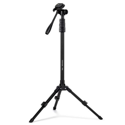 ■狭い場所でも使いやすい設置面積が小さいため、運動会や学芸会など、通常の三脚を広げると邪魔になってしまうような狭い場所での撮影に便利です。また、全伸高が1883mmあるため、立見席の後方からでも撮影チャンスを伺うことができます。■一脚にもミニ三脚にもなる3in1方式雲台と自立脚を取り外して直接結合すれば、ローアングル撮影やテーブルフォトなどに便利なミニ三脚になります。また、通常の一脚として使用するための石突も付属しています。