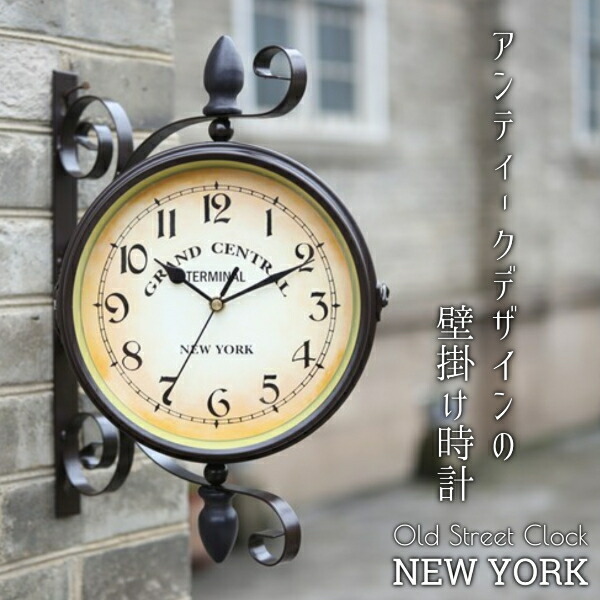アナログ 掛時計 壁掛時計 アンティーク レトロ おしゃれ 時計 WALL CLOCK 両面時計 アイアン