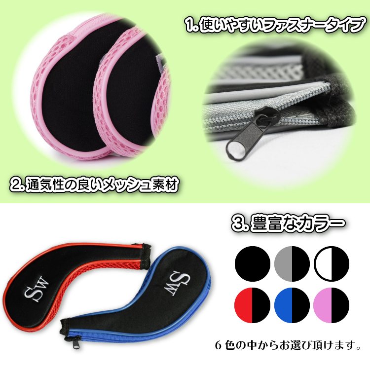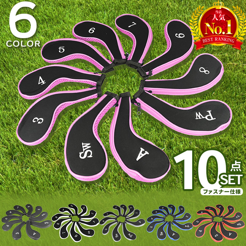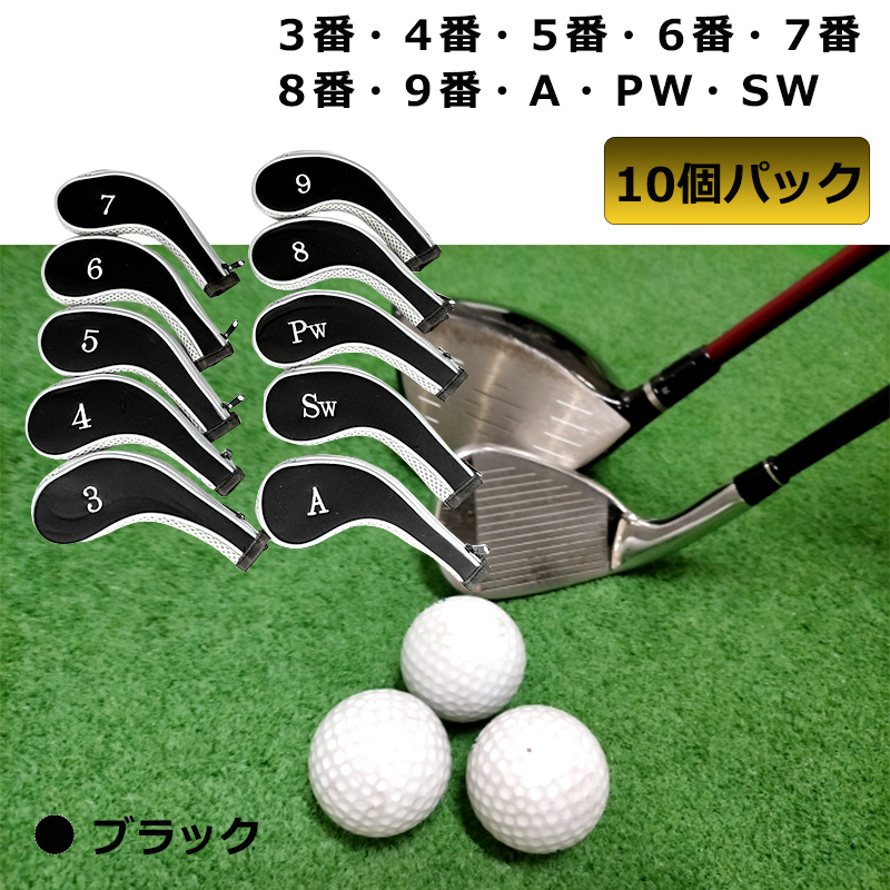 ゴルフ アイアンカバー ヘッドカバー ファスナー 10個 セット シンプル