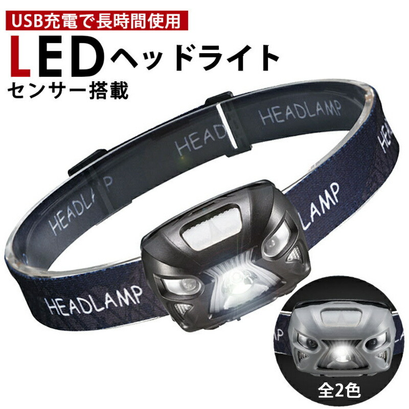 ヘッドライト 充電式 LED ヘッドランプ USB 軽量 明るい ワークライト 防水 釣り 登山 アウトドア 充電式 センサー ライト調光 防災 防犯 懐中電灯 ヘルメット