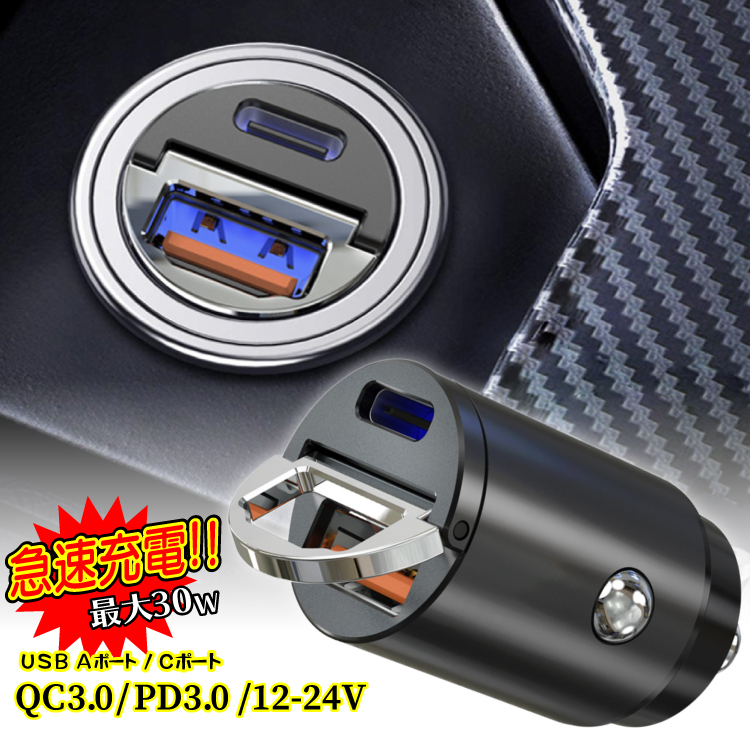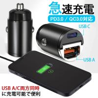 シガーソケット USB 変換 2口 増設 小型 車 12V 24V type-c PD QC3.0 車載 スマホ 充電器 急速 高速 充電 iPhpne Android タイプC カーチャージャー 2ポー