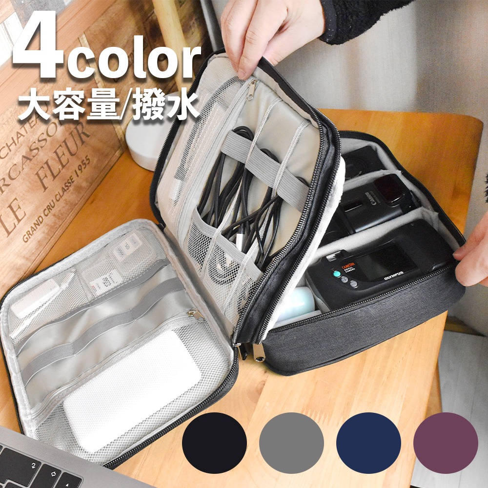 ガジェットポーチ 薄型 大容量 ケーブル 収納ポーチ おしゃれ 自立 3層 ガジェットケース 女性 男性 コンパクト 撥水 小物入れ 充電器 付属品 OA
