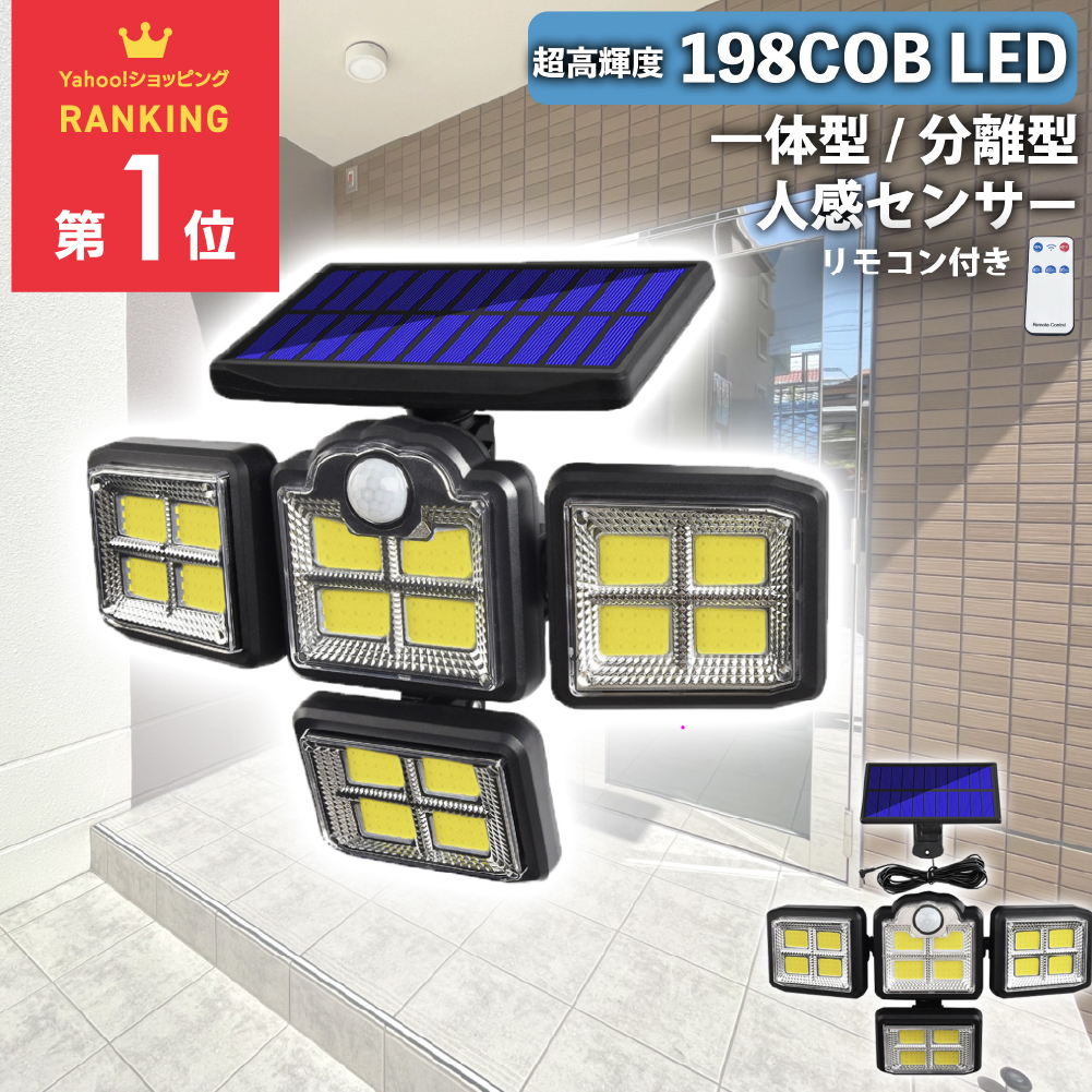 センサーライト 屋外 COBライト 防水 ソーラー パネル一体型 パネル分離型 LEDライト COB LED 人感センサー 充電式 玄関 駐車場 カーポート 庭 センサー 自動
