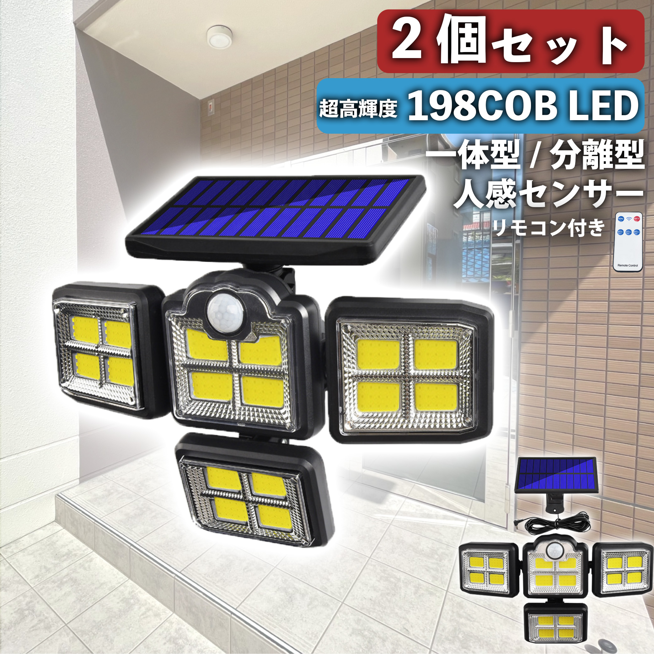 センサーライト 屋外 防水 2個セット COB LED ライト パネル 一体型 分離型 ソーラーライト 屋外用 人感 明るい 防犯 自動