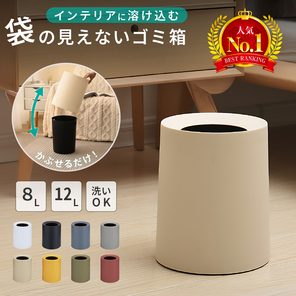 【Mサイズ 1980円~】ごみ箱 おしゃれ 丸型 袋が見えない 8L 12L シンプル 2重構造 フタなし くず入れ 見えない ゴミ袋を見せない キッチン ごみばこ ゴミ箱