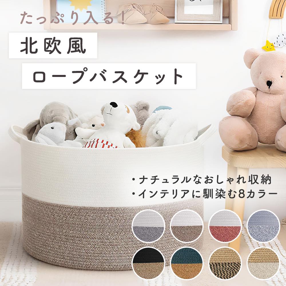 おもちゃ 収納 かご ブランケット ロープバスケット 洗濯かご ぬいぐるみ 大きめ 人形 毛布 タオルケット リビング 子供部屋 おもちゃ箱