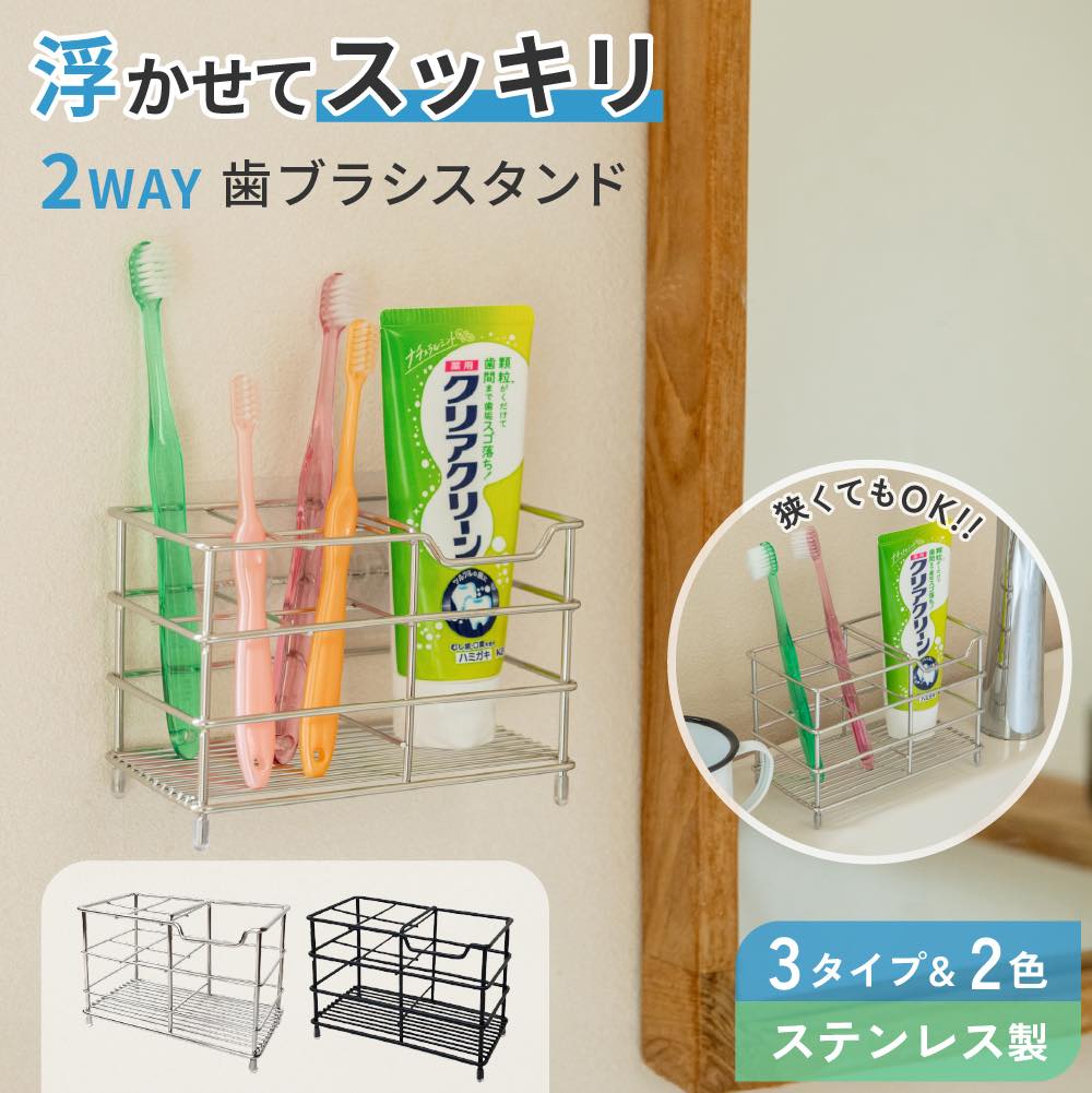 洗面所すっきり 歯ブラシスタンド(選べる3タイプ/壁掛けフック付属)