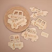 商品名:Promise Babe 月齢フォト ベビーマンスリーカード 15枚セット 車形 ウッド 天然木材 ニューボーンフォト 写真道具 成長記録 新生児 赤ちゃん 出産祝い