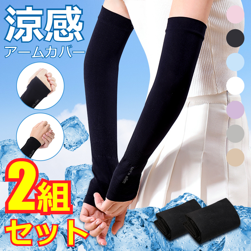 アームカバー 2組セット UVアームカバー UVカット 手袋 ロング ロゴ レディース 紫外線 指穴 ランニング スポーツ 運転 ドライブ 無指穴