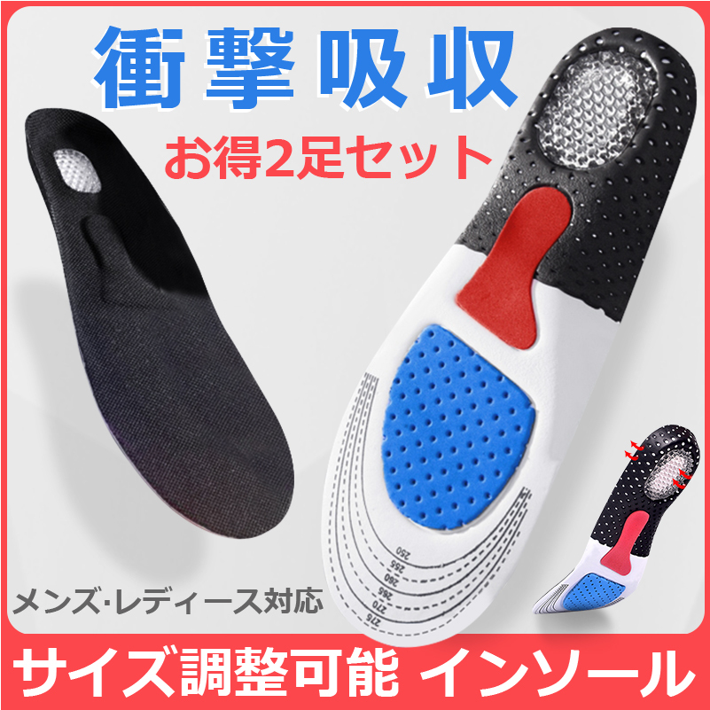 インソール 2足 セット 衝撃吸収 中敷 ウォーキング ランニング メンズ レディース スニーカー ブーツ パンプス 安全靴 革靴 防臭 矯正 疲れない