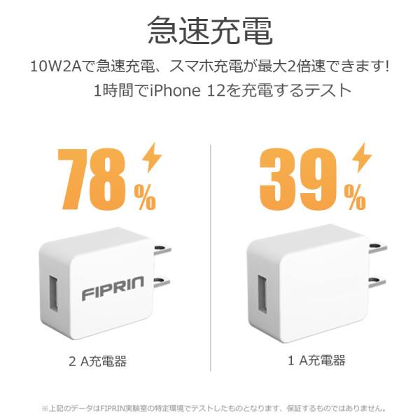 FIPRIN 2000J スマホ充電器 モバイルバッテリー充電器 10W 2A 急速充電用USB ACアダプター スマートフォン ほぼ全機種対応 充電速度2倍
