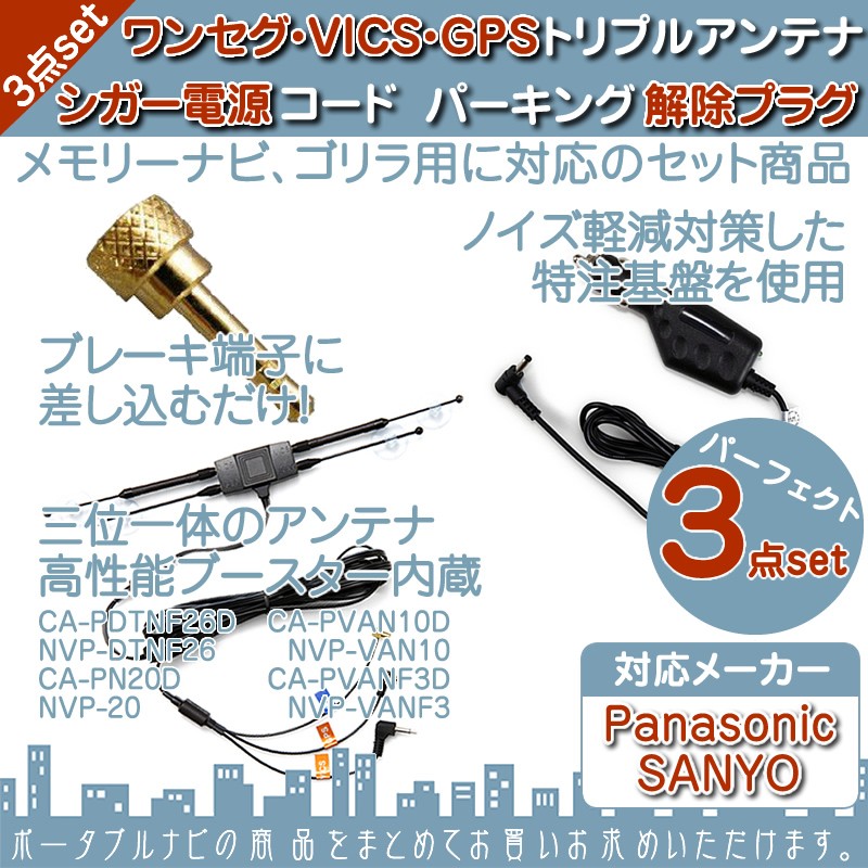 | ■機能的な一体型アンテナ パナソニック(Panasonic)、サンヨー(SANYO) のメモリーナビゴリラ・ミニゴリラ対応のワンセグアンテナ&VICSアンテナ&GPSアンテナが一体となった機能的な外部アンテナです。 ■ワンセグアンテナ部 ブースター(電波増幅機能)内蔵で良好な感度を実現しました。 ■吸盤取付タイプ フィルム貼り付け式ではなく、取外し可能な吸盤取付タイプを採用しました。 簡単に取付け・取外しができますので車でも家でも活用できます。 ※アンテナ本体を吸盤でウィンドウ等に貼り付けます。 また、ダッシュボードへ設置する事も可能です。 ■安心の受信感度 純正オプション品と比べ同等以上の感度を実現しておりますので、満足いただけると思います。 ■以下商品の代用品となります。 ワンセグフィルムアンテナ(CA-PDTNF26D、NVP-DTNF26) VICS外部アンテナ(CA-PVAN10D、NVP-VAN10、CA-PVANF3D、NVP-VANF3、CA-VA010D) GPSアンテナ(CA-PN20D、NVP-N20) |